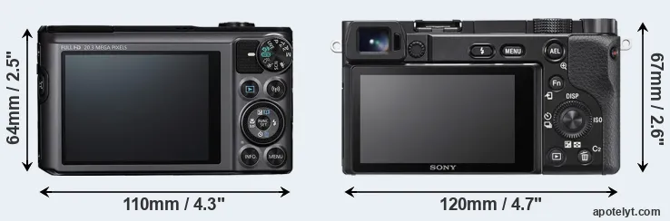 The Canon PowerShot SX720 HS and the Sony Alpha A6100 are two digital cameras that were revealed to the public, respectively, in February 2016 and August 2019. The SX720 is a fixed lens compact, while the A6100 is a mirrorless interchangeable lens camera. The cameras are based on a 1/2.3-inch (SX720) and an APS-C (A6100) sensor. The Canon has a resolution of 20.2 megapixels, whereas the Sony provides 24 MP.