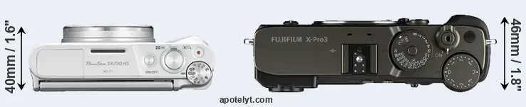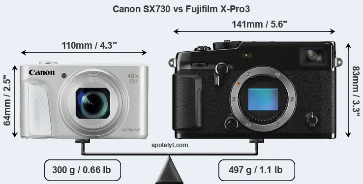 Size Canon SX730 vs Fujifilm X-Pro3