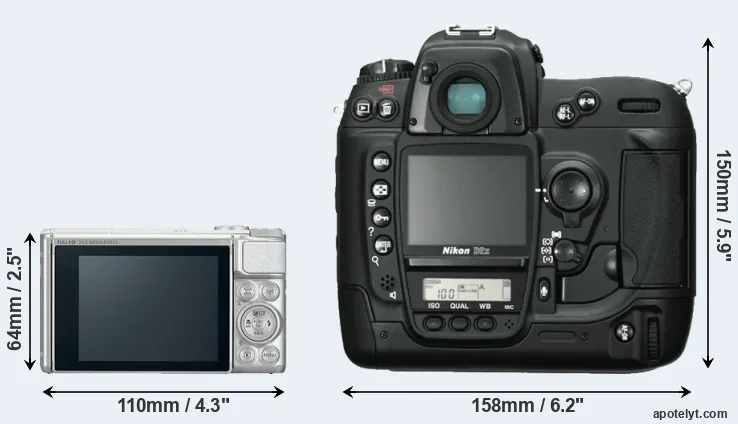 | 2. | Nikon D2X | 158 mm | 150 mm | 86 mm | 1252 g | 3800 | Y | Sep 2004 | US$ 4 999 | ebay.com | |