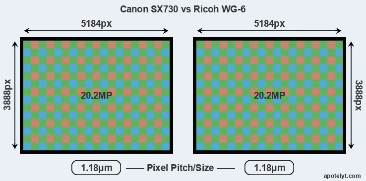 | Sensor Specs | Canon SX730 | Ricoh WG-6 |