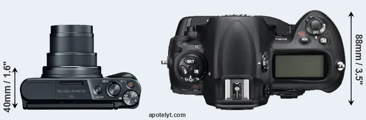 | Body Specs | Canon SX740 | Nikon D3S |