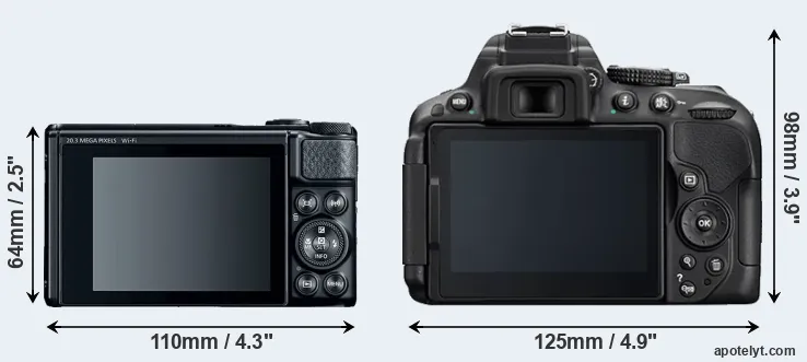 Going beyond this snapshot of core features and characteristics, what are the differences between the Canon PowerShot SX740 HS and the Nikon D5300? Which one should you buy? Read on to find out how these two cameras compare with respect to their body size, their imaging sensors, their shooting features, their input-output connections, and their reception by expert reviewers.
