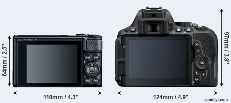 If the front view area (width x height) of the cameras is taken as an aggregate measure of their size, the Nikon D5500 is considerably larger (71 percent) than the Canon SX740. In this context, it is worth noting that neither the SX740 nor the D5500 are weather-sealed.
