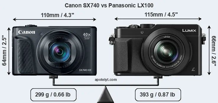 | Body Specs | Canon SX740 | Panasonic LX100 |