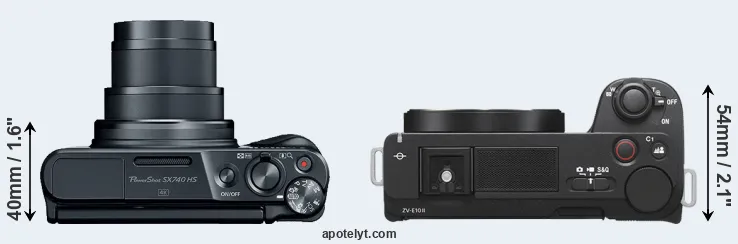 The above size and weight comparisons are to some extent incomplete and possibly misleading, as the SX740 has a lens built in, whereas the ZV-E10 II is an interchangeable lens camera that requires a separate lens. Attaching the latter will add extra weight and bulk to the setup. You can compare the optics available for the ZV-E10 II and their specifications in the Sony E-Mount Lens Catalog.