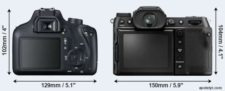 Going beyond this snapshot of core features and characteristics, what are the differences between the Canon EOS Rebel T100 and the Fujifilm GFX 50S II? Which one should you buy? Read on to find out how these two cameras compare with respect to their body size, their imaging sensors, their shooting features, their input-output connections, and their reception by expert reviewers.