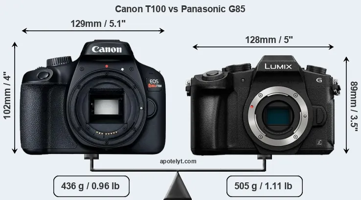 | Body Specs | Canon T100 | Panasonic G85 |