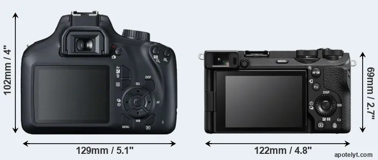 Going beyond this snapshot of core features and characteristics, what are the differences between the Canon EOS Rebel T100 and the Sony Alpha A6700? Which one should you buy? Read on to find out how these two cameras compare with respect to their body size, their imaging sensors, their shooting features, their input-output connections, and their reception by expert reviewers.
