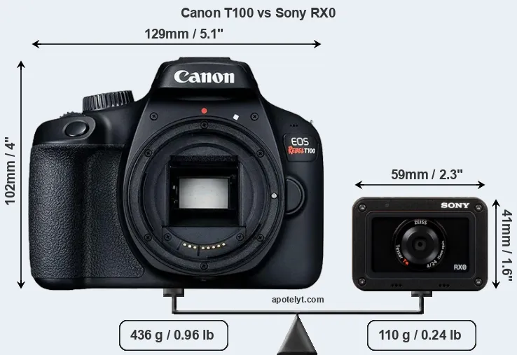 | Body Specs | Canon T100 | Sony RX0 |