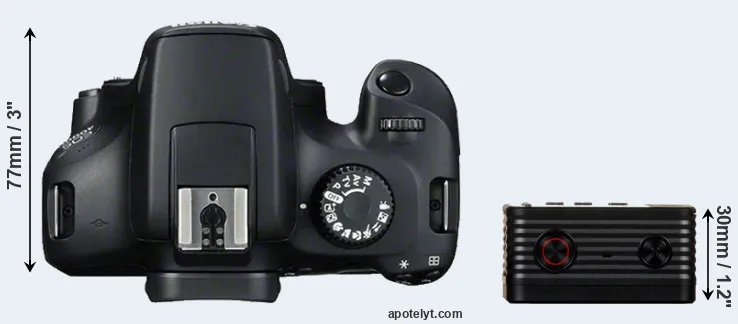 | 1. | Canon T100 | 129 mm | 102 mm | 77 mm | 436 g | 500 | n | Feb 2018 | EUR 399 | amazon.com | |