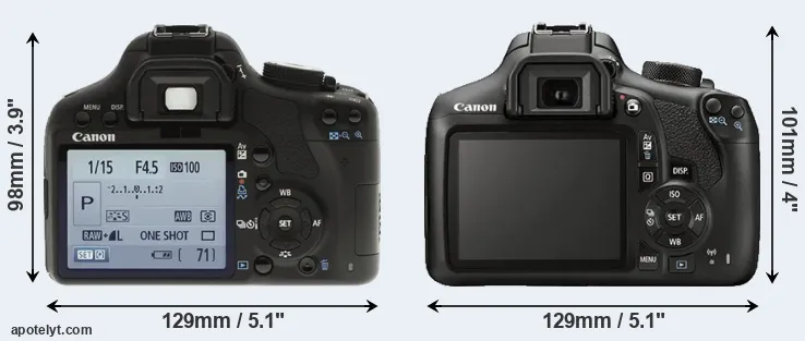 | 11. | Canon T100 | 129 mm | 102 mm | 77 mm | 436 g | 500 | n | Feb 2018 | US$ 399 | amazon.com | |
