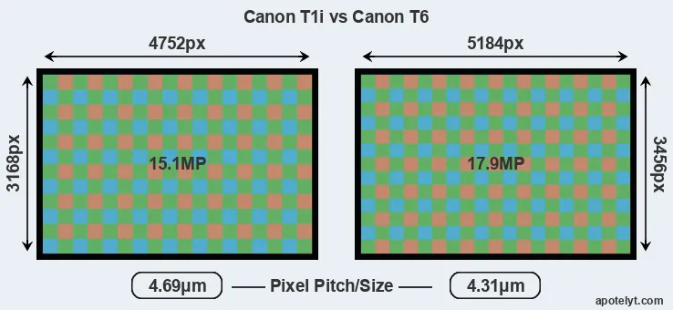 | Sensor Specs | Canon T1i | Canon T6 |