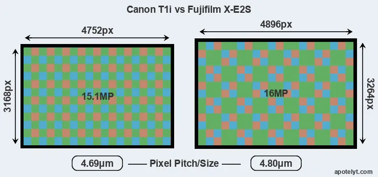 | Sensor Specs | Canon T1i | Fujifilm X-E2S |