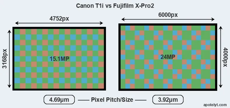 | Sensor Specs | Canon T1i | Fujifilm X-Pro2 |