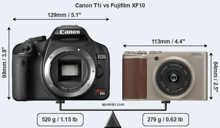 | Body Specs | Canon T1i | Fujifilm XF10 |