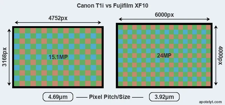 | Sensor Specs | Canon T1i | Fujifilm XF10 |