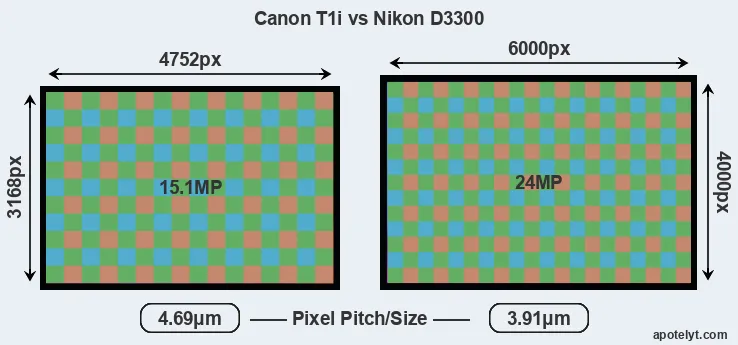| Sensor Specs | Canon T1i | Nikon D3300 |