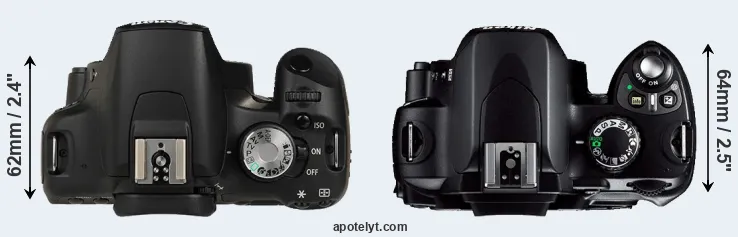 | 12. | Canon XTi | 127 mm | 84 mm | 65 mm | 556 g | 370 | n | Aug 2006 | US$ 799 | ebay.com | |