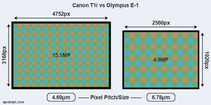 | Sensor Specs | Canon T1i | Olympus E-1 |