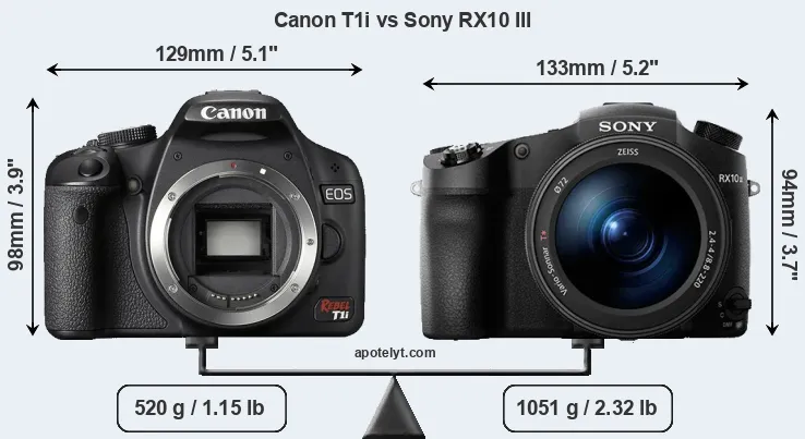 Specifications: Canon T1i vs Sony RX10 III