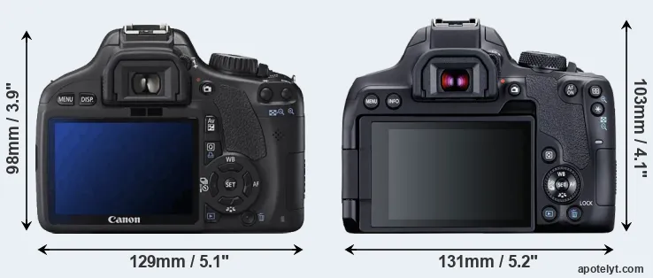 | 7. | Canon T3i | 133 mm | 100 mm | 80 mm | 570 g | 440 | n | Feb 2011 | US$ 599 | ebay.com | |