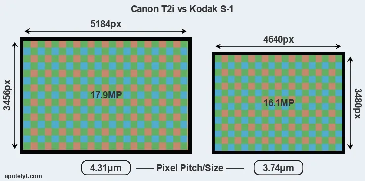 | Sensor Specs | Canon T2i | Kodak S-1 |