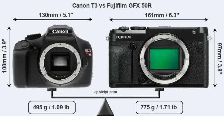| Body Specs | Canon T3 | Fujifilm GFX 50R |