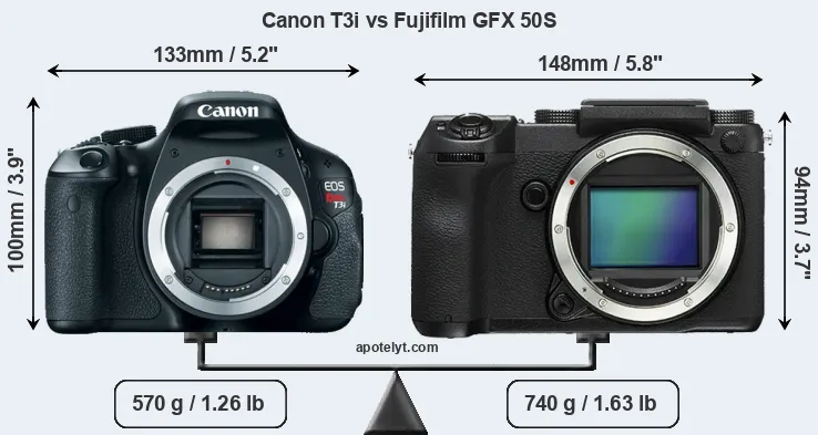 | Body Specs | Canon T3i | Fujifilm GFX 50S |