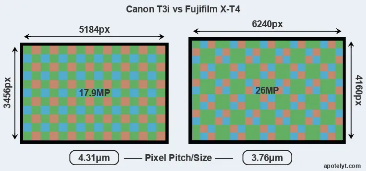 | Sensor Specs | Canon T3i | Fujifilm X-T4 |