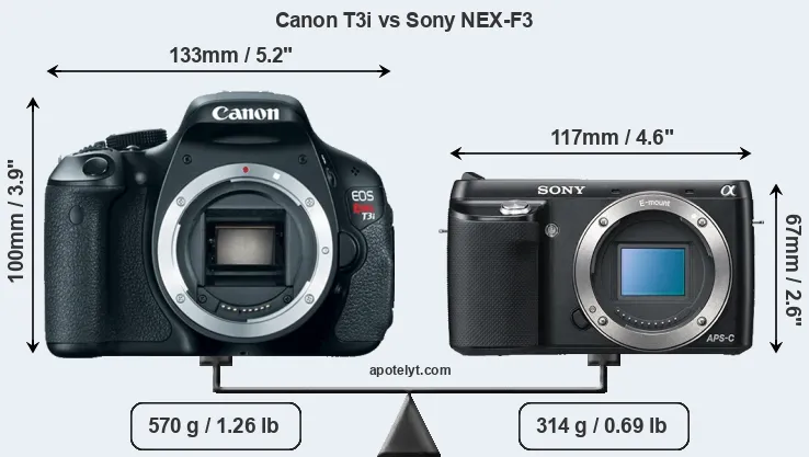 | Body Specs | Canon T3i | Sony NEX-F3 |