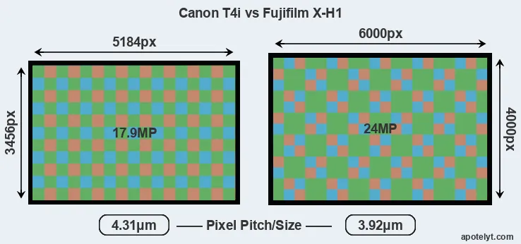 | Sensor Specs | Canon T4i | Fujifilm X-H1 |