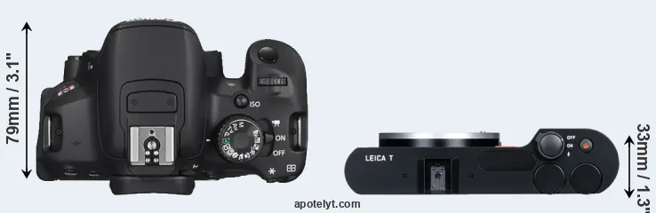 The Canon EOS Rebel T4i (called Canon 650D in some regions) and the Leica T (Typ 701) are two digital cameras that were announced, respectively, in June 2012 and April 2014. The T4i is a DSLR, while the T Typ 701 is a mirrorless interchangeable lens camera. Both cameras are equipped with an APS-C sensor. The Canon has a resolution of 17.9 megapixels, whereas the Leica provides 16.2 MP.