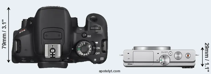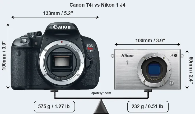 Size Canon T4i vs Nikon 1 J4