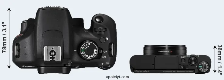 | 13. | Canon T100 | 129 mm | 102 mm | 77 mm | 436 g | 500 | n | Feb 2018 | US$ 399 | amazon.com | |