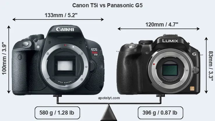 Size Canon T5i vs Panasonic G5
