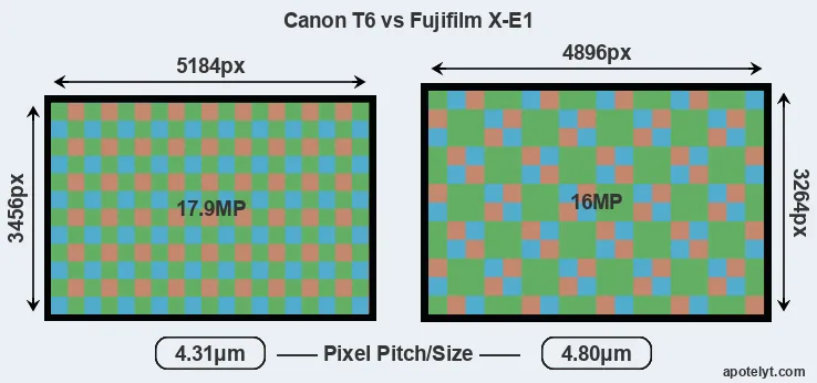 | Sensor Specs | Canon T6 | Fujifilm X-E1 |