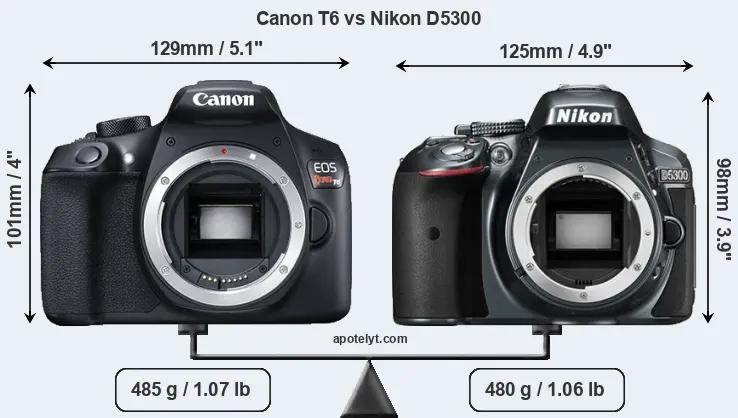 | Body Specs | Canon T6 | Nikon D5300 |