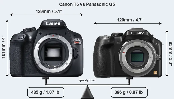 | Body Specs | Canon T6 | Panasonic G5 |