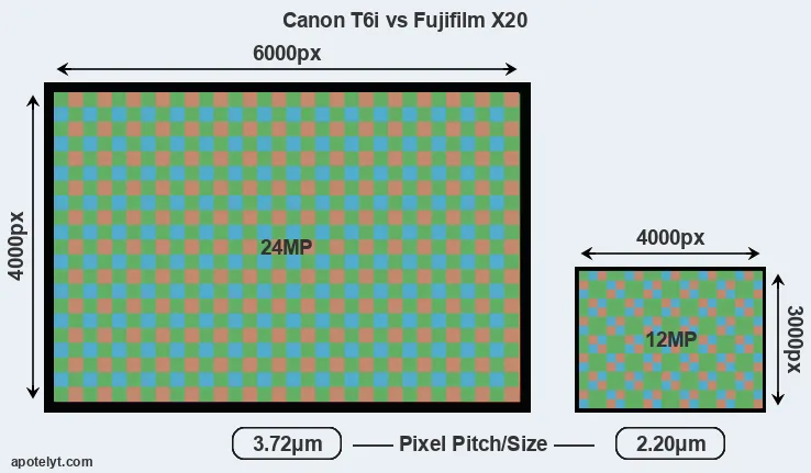 | Sensor Specs | Canon T6i | Fujifilm X20 |