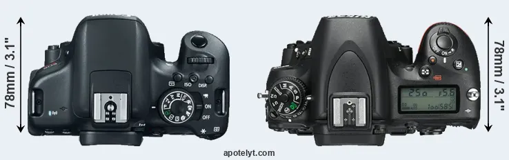 | 8. | Canon T6s | 132 mm | 101 mm | 78 mm | 565 g | 440 | n | Feb 2015 | US$ 649 | ebay.com | |