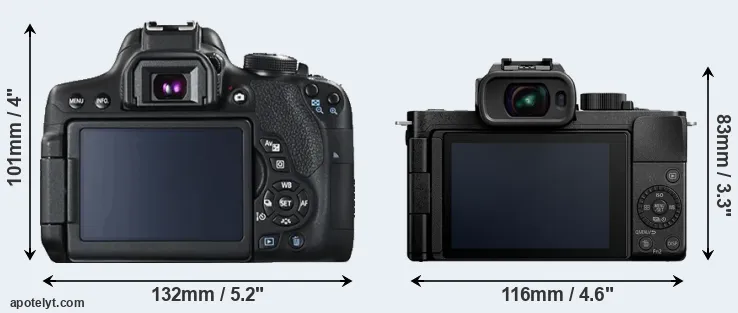 The Canon EOS Rebel T6i (called Canon 750D in some regions) and the Panasonic Lumix DC-G100 (labelled Panasonic G110 in some countries) are two digital cameras that were announced, respectively, in February 2015 and June 2020. The T6i is a DSLR, while the G100 is a mirrorless interchangeable lens camera. The cameras are based on an APS-C (T6i) and a Four Thirds (G100) sensor. The Canon has a resolution of 24 megapixels, whereas the Panasonic provides 20.2 MP.