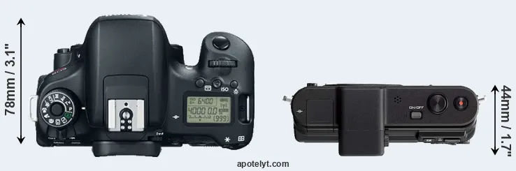 | 1. | Canon T6s | 132 mm | 101 mm | 78 mm | 565 g | 440 | n | Feb 2015 | US$ 649 | ebay.com | |