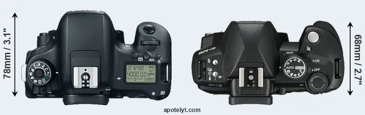 | 3. | Canon 77D | 131 mm | 100 mm | 76 mm | 540 g | 600 | n | Feb 2017 | US$ 899 | ebay.com | |