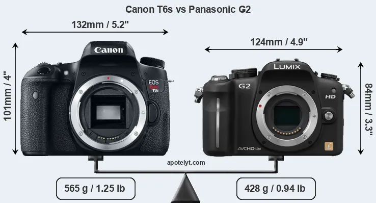 Size Canon T6s vs Panasonic G2