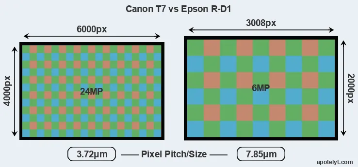 | Sensor Specs | Canon T7 | Epson R-D1 |