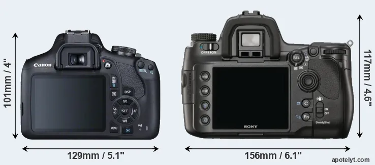 Going beyond this snapshot of core features and characteristics, what are the differences between the Canon EOS Rebel T7 and the Sony Alpha A900? Which one should you buy? Read on to find out how these two cameras compare with respect to their body size, their imaging sensors, their shooting features, their input-output connections, and their reception by expert reviewers.