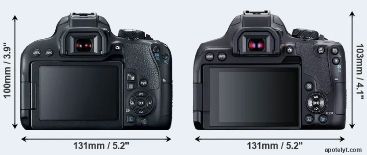 | 1. | Canon T7i | 131 mm | 100 mm | 76 mm | 532 g | 600 | n | Feb 2017 | US$ 749 | ebay.com | |