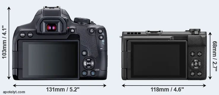 | 10. | Canon SL3 | 122 mm | 93 mm | 70 mm | 449 g | 1070 | n | Apr 2019 | US$ 599 | amazon.com | |