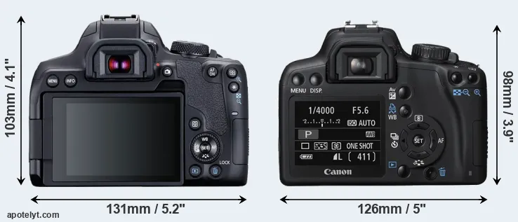 | 1. | Canon T8i | 131 mm | 103 mm | 76 mm | 515 g | 800 | n | Feb 2020 | US$ 749 | ebay.com | |