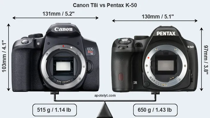 Specifications: Canon T8i vs Pentax K-50